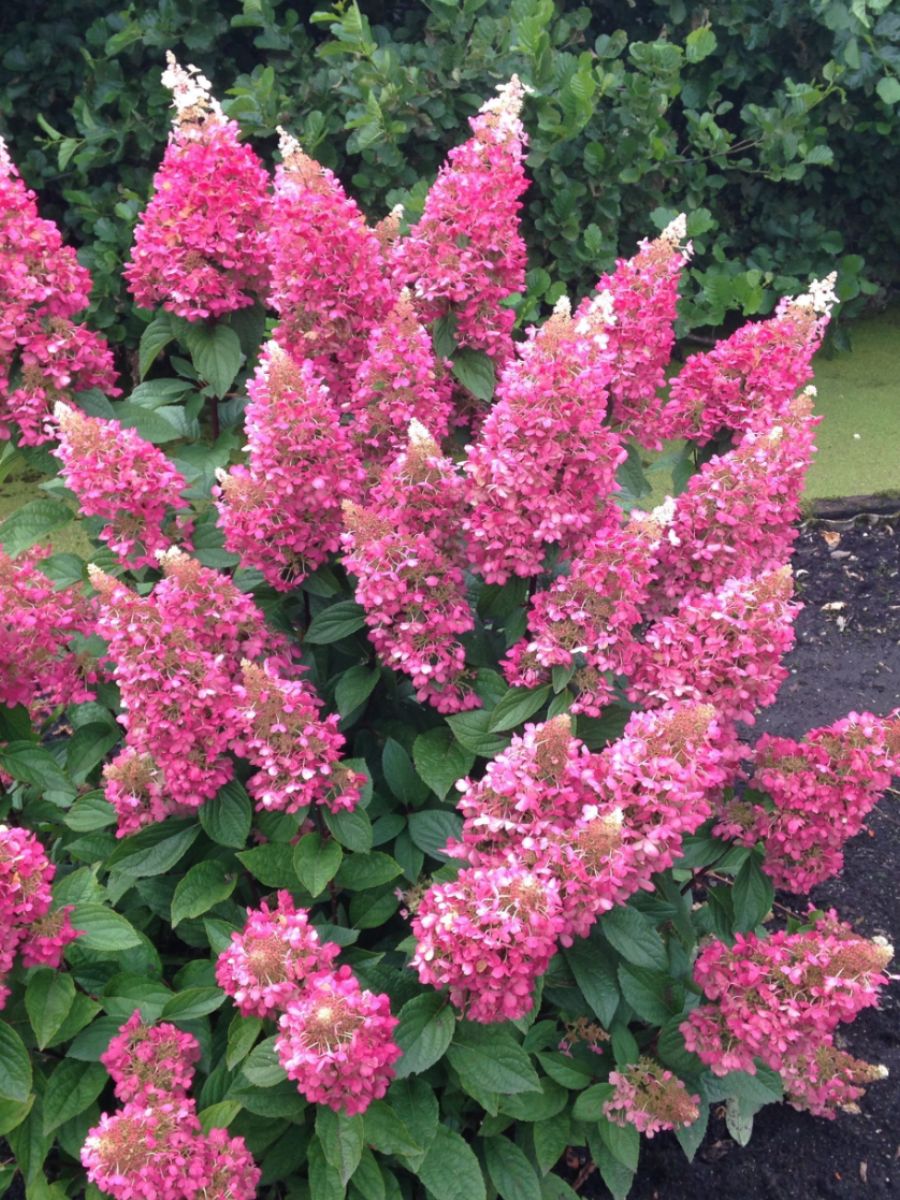 Кустарник в диаметре кроны взрослого растения 1- 2 м; высота до 2 м. Годовой прирост около 30 см. Форма куста широко-округлая, не разваливающаяся. Конусовидные соцветия с большим количеством стерильных цветков, чисто-белые, затем приобретают пурпурно-розовый оттенок. Цветет с июля до сентября. Листья зелёного цвета, осенью краснеют, широкие, шершавые, зазубренные по краям. Один из лучших сортов метельчатой гортензии, выведенный в 2003 году в Бельгии.