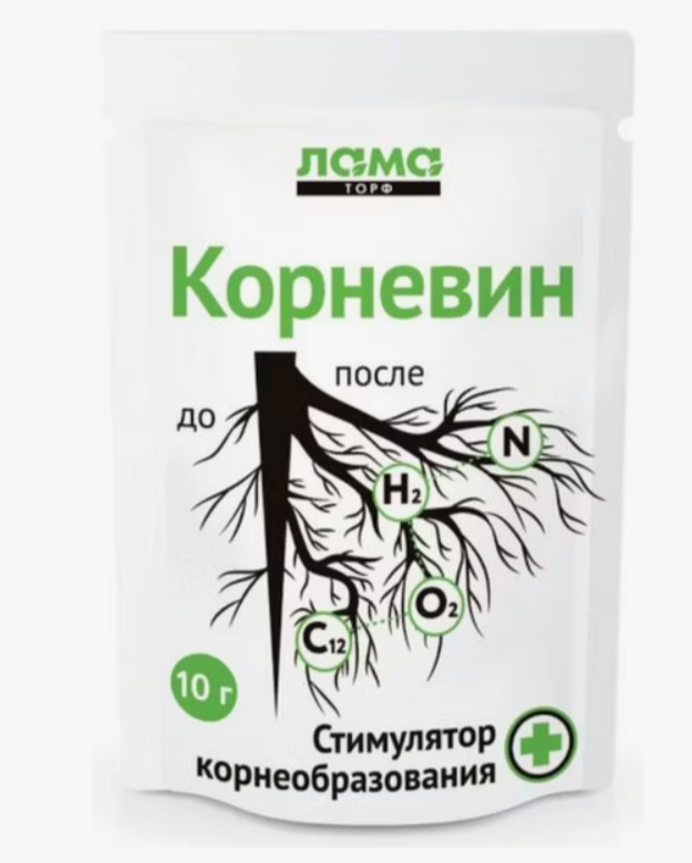 Применение: является регулятором роста растений, активизирует рост корневой системы, стимулирует рост боковых (придаточных) корней, укореняет рассаду (овощные, ягодные и цветочные растения) и саженцы (плодово-ягодные деревья и кустарники, декоративные растения), обеспечивает быструю приживаемость посадочного материала и высадке/пересадке растений, омолаживает корневую систему многолетних цветочных культур, кустарников и деревьев (активация роста молодых корней).